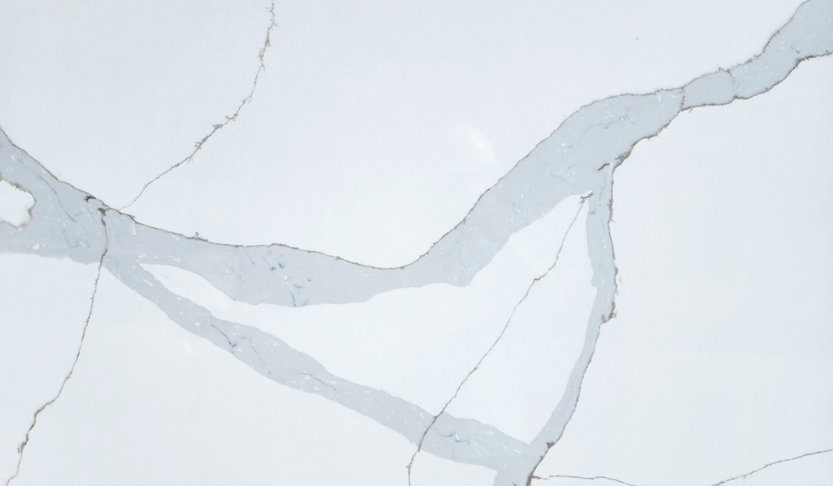 The Calacatta Ammil quartz slab from the Glacier Quartz Collection features a striking white base, creating a clean, modern aesthetic perfect for sophisticated spaces. Its soft and delicate veining, characterized by subtle light gray lines, creates a serene and timeless atmosphere. The veins flow organically across the surface, much like the tranquil movement of water through ice, bringing a sense of fluidity and natural elegance. This design is ideal for enhancing interior styles, from minimalist to contemporary settings.