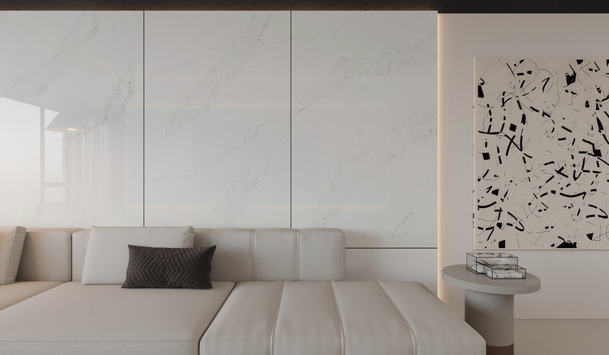 Calacatta Bloom Quartz Slab – A Blooming Touch of Elegance