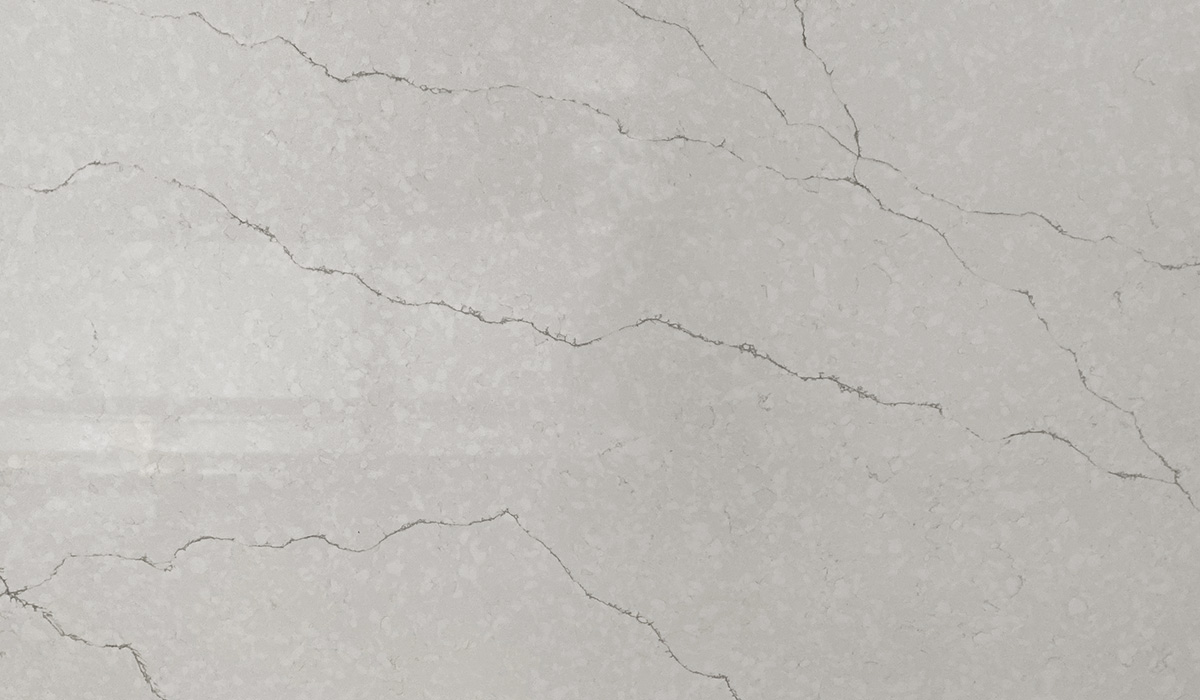 The Harmony Quartz Slab features a delicate light gray background reminiscent of the sky just before dawn entirely breaks. This soft tone represents the night that has passed, leaving behind a cool edge that evokes a sense of stillness and depth, inviting tranquility into any space.