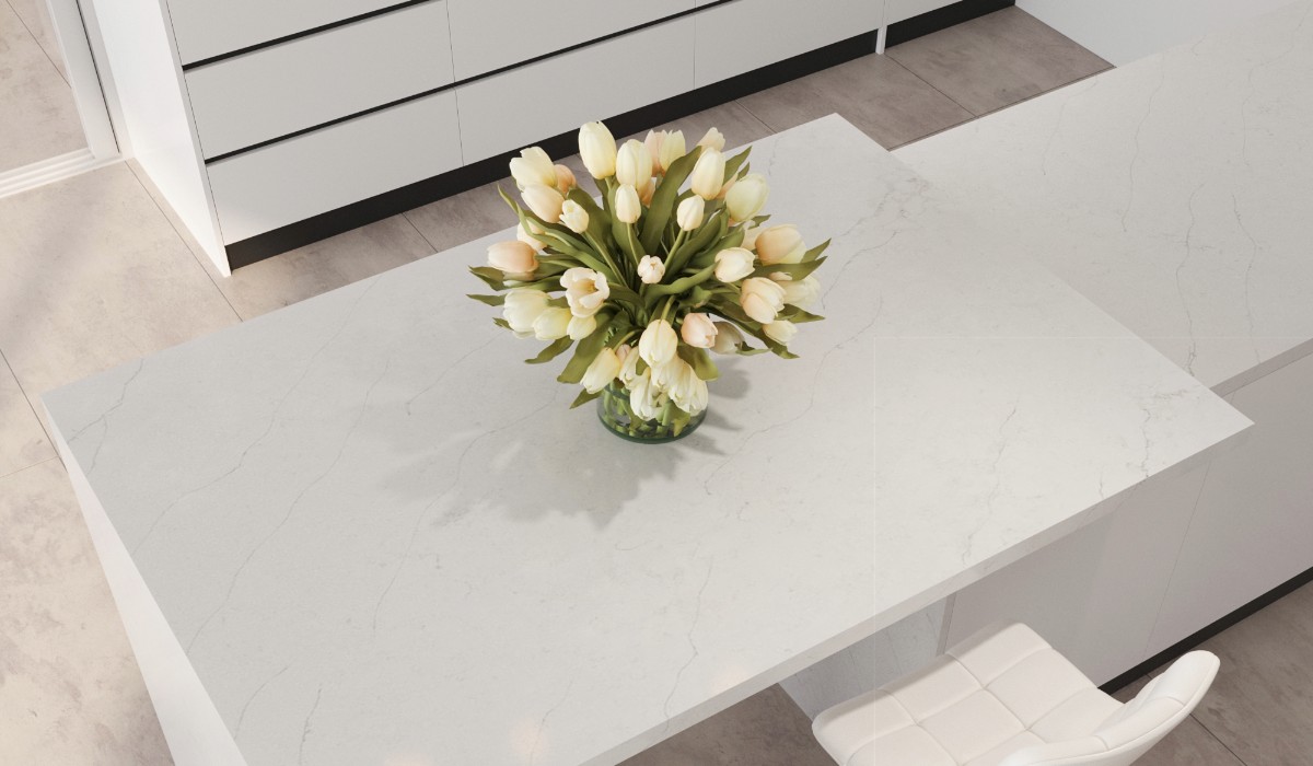 Overall, the Milano Bella design embodies a minimalist and clean aesthetic, bringing a sense of calm and sophistication to any space. This quartz slab not only provides visual appeal but also serves as a highly functional surface, ideal for creating a timeless and serene environment in both residential and commercial settings.