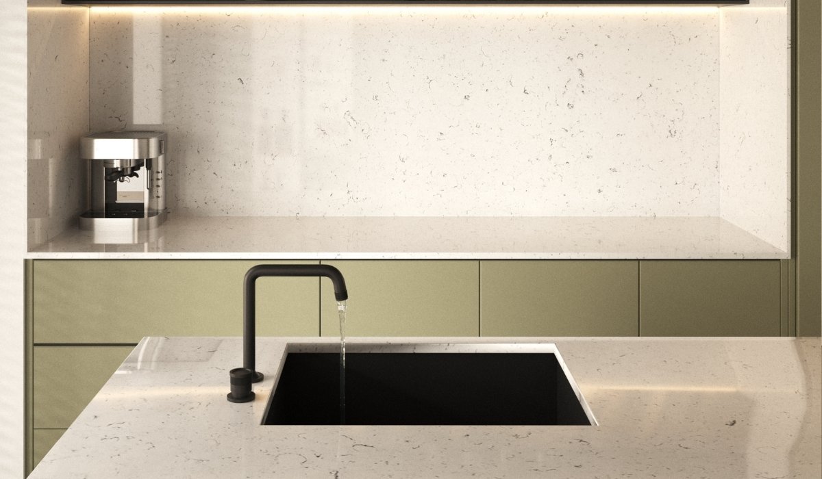 The Carrara-style veining resembles rays of light softly filtering through mist—it is delicate and never overwhelms the pure white base. The veins are subtle and evenly distributed, not sharp or harsh, but instead provide a gentle, soothing visual rhythm, like scattered piano notes in a quiet melody.